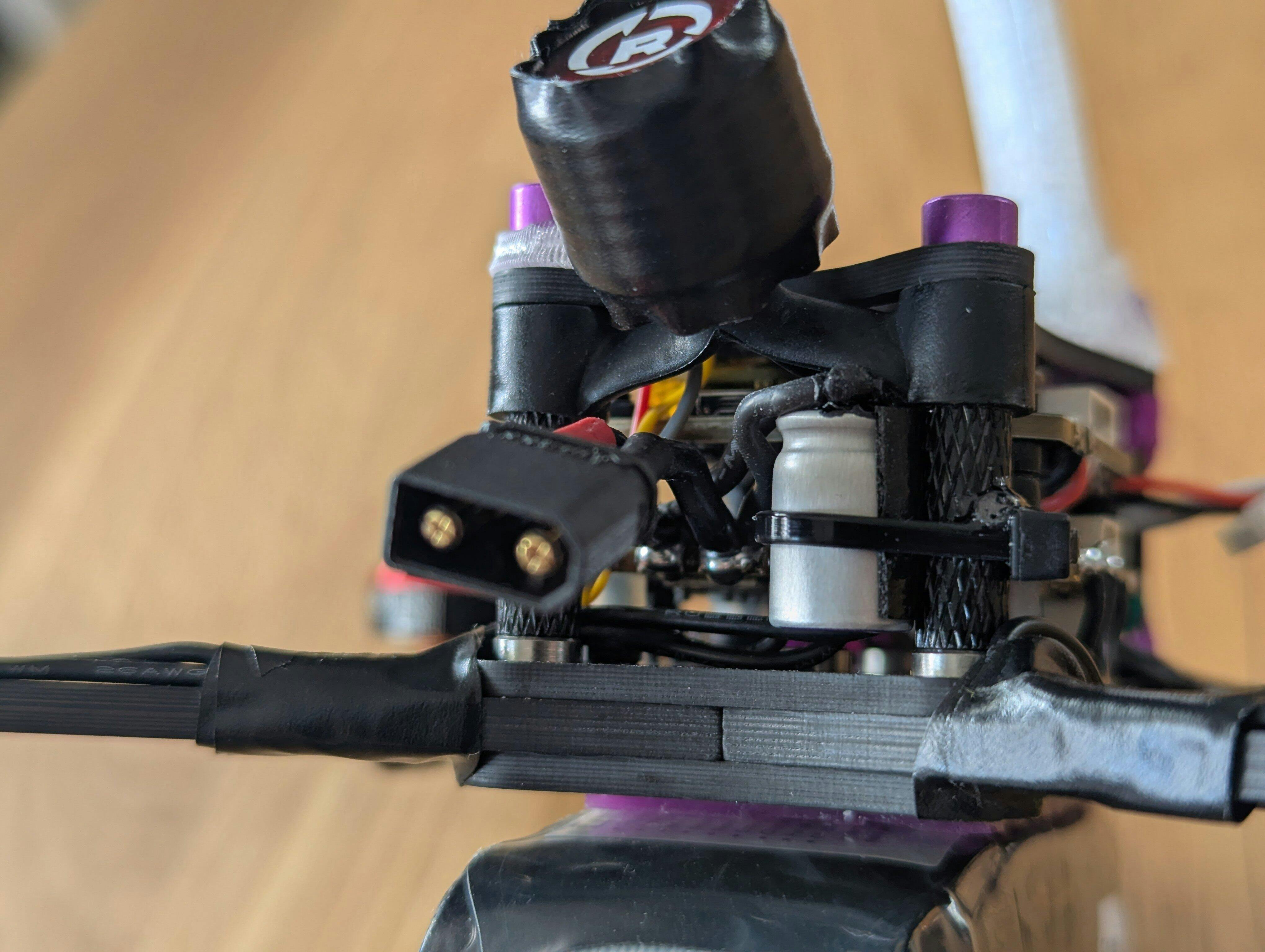 ESCs, AIOs, and plugs fit safely inside the frame with room to spare